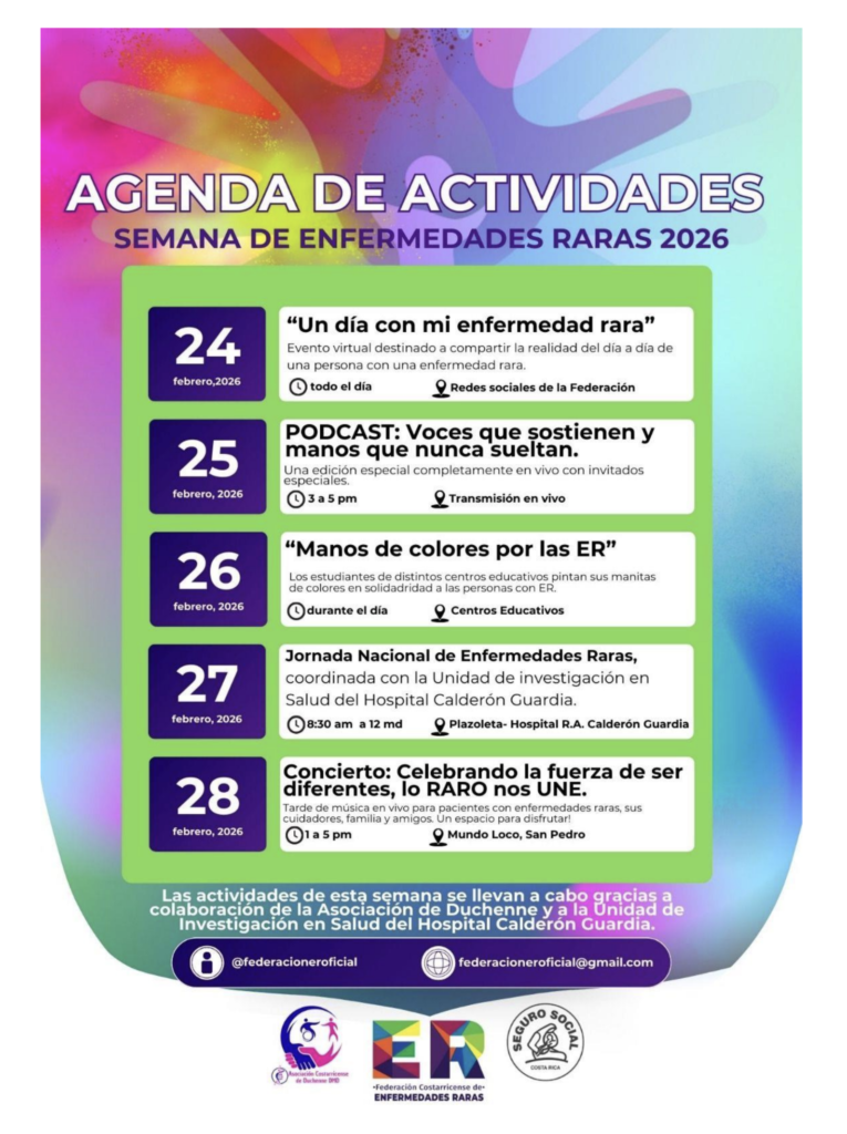 La Federación Costarricense de Enfermedades Raras desarrolla esta semana una agenda nacional de actividades en el marco del Día Mundial de las Enfermedades Raras, con el objetivo de visibilizar, educar y sensibilizar sobre la realidad que enfrentan personas que viven con condiciones poco frecuentes en el país.
