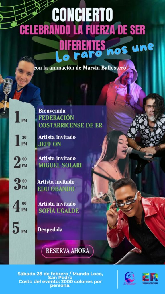 La programación culminará el sábado 28 de febrero con el concierto Celebrando la fuerza de ser diferentes, lo raro nos une, que se realizará en Mundo Loco, en San Pedro de Montes de Oca, de 1:00 p. m. a 5:00 p. m. El evento contará con la participación de artistas nacionales invitados.