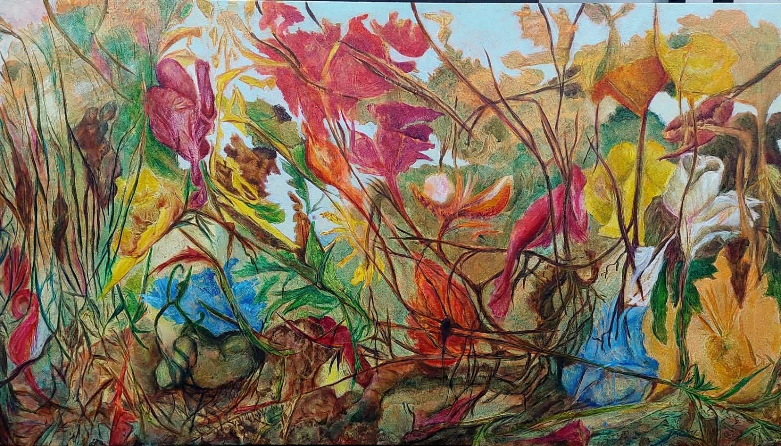 Ronald Gamboa mostrará una selección que combina piezas recientes con obras ya exhibidas anteriormente, entre ellas La Tormenta, presentada en el Salón Nacional de Artes Visuales del Museo de Arte Costarricense en 2023, y El Despertar, expuesta en São Paulo, Brasil. Su propuesta se mueve entre el paisaje semiabstracto y la evocación emocional del territorio.