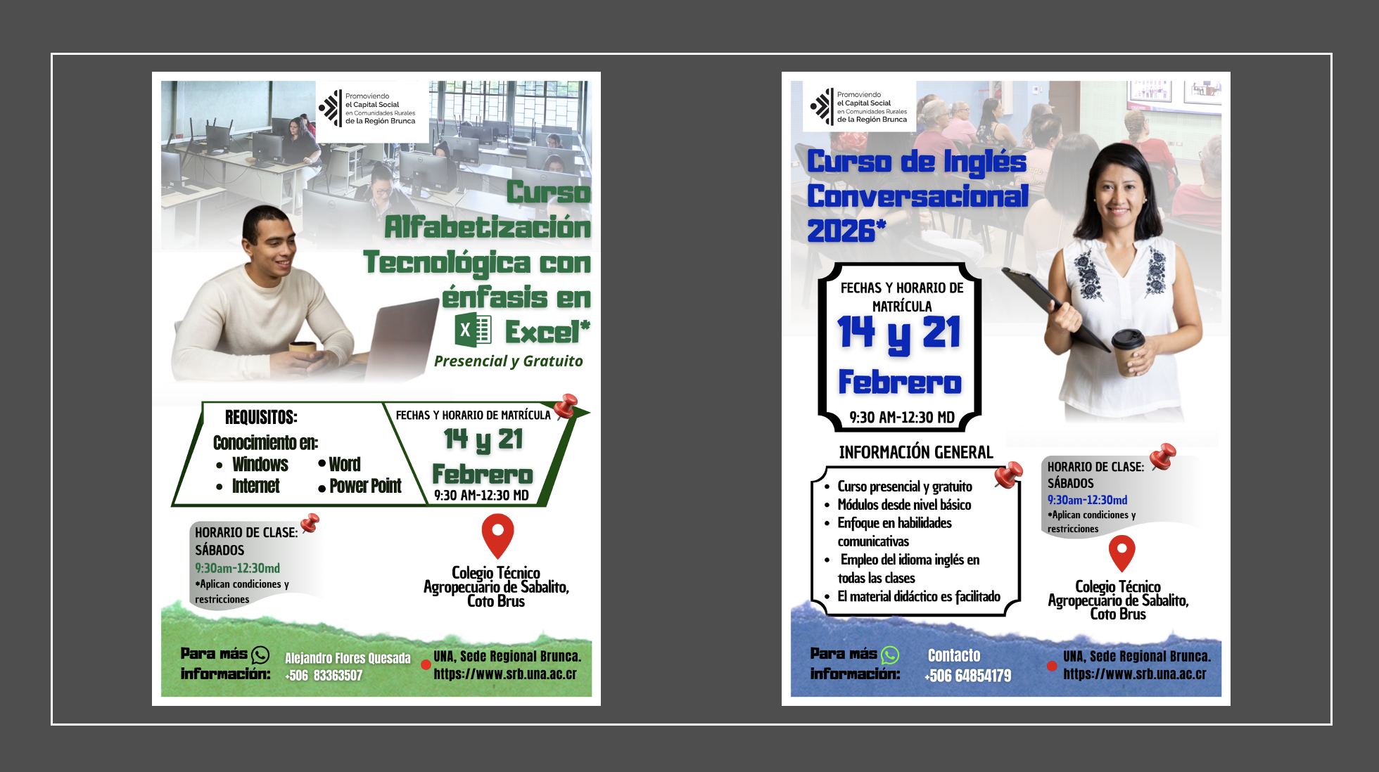 En el marco del programa Promoviendo el Capital Social en Comunidades Rurales de la Región Brunca, desarrollado por la Universidad Nacional (UNA), se abrió la convocatoria para cursos gratuitos de inglés conversacional y alfabetización tecnológica con énfasis en Excel, dirigidos a habitantes de San Vito de Coto Brus y poblaciones aledañas.