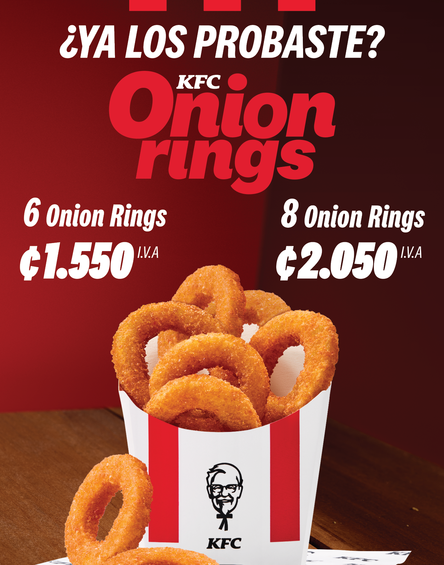 Con el objetivo de continuar evolucionando su propuesta gastronómica y responder a las preferencias de sus consumidores, KFC Costa Rica incorpora los Onion Rings como una nueva alternativa dentro de su menú a partir de este lunes 2 de marzo en todos sus restaurantes del país.