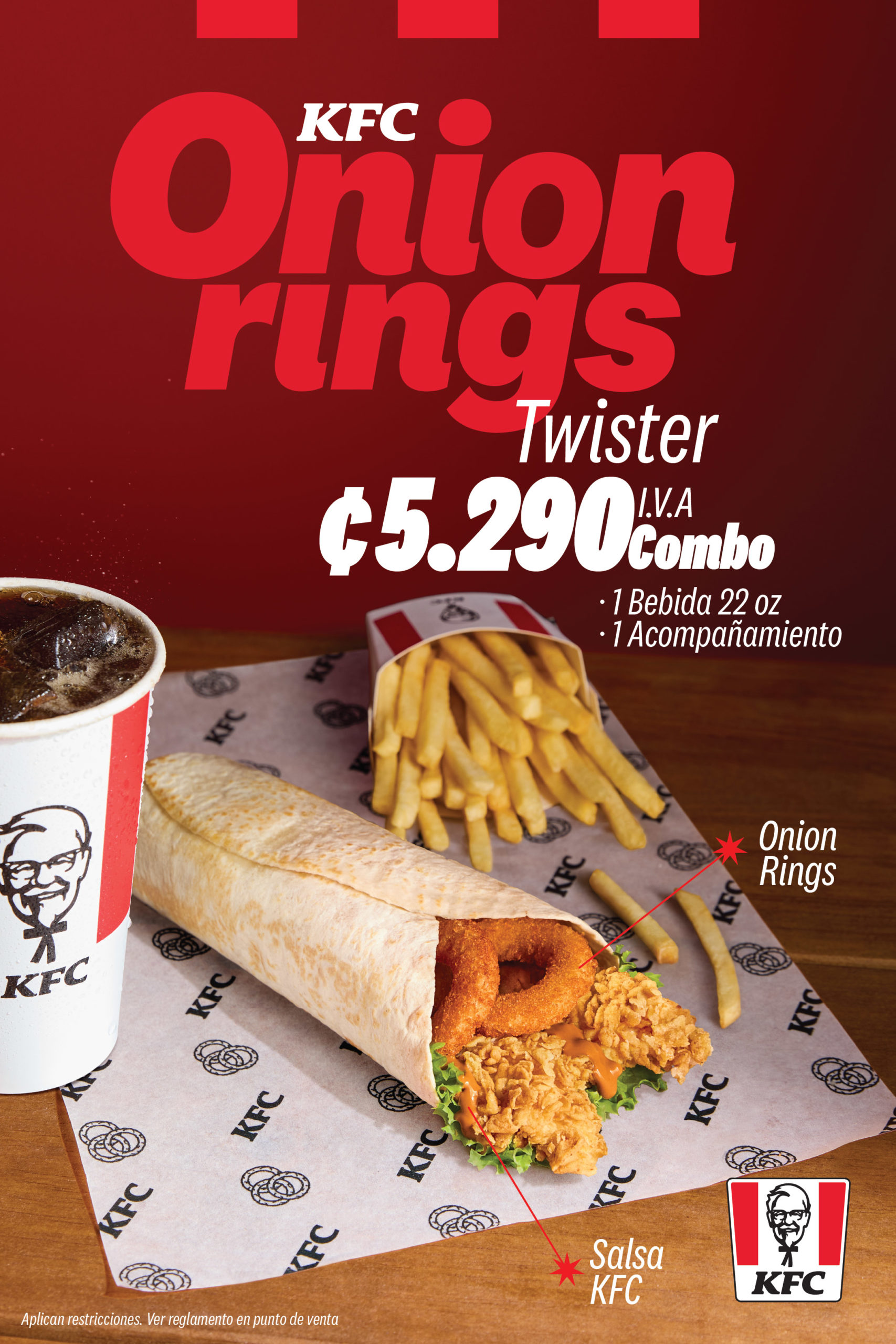 Los Onion Rings estarán disponibles como acompañamiento en presentaciones de 6 unidades por ₡1.550 y 8 unidades por ₡2.050. Además, formarán parte del Combo Chicken Sandwich, que incluye 1 Onion Rings Chicken Sandwich, 1 bebida de 22 oz y 1 acompañamiento individual por ₡5.390; y del Combo Twister, que incluye 1 Onion Rings Twister, 1 bebida de 22 oz y 1 acompañamiento individual por ₡5.290.