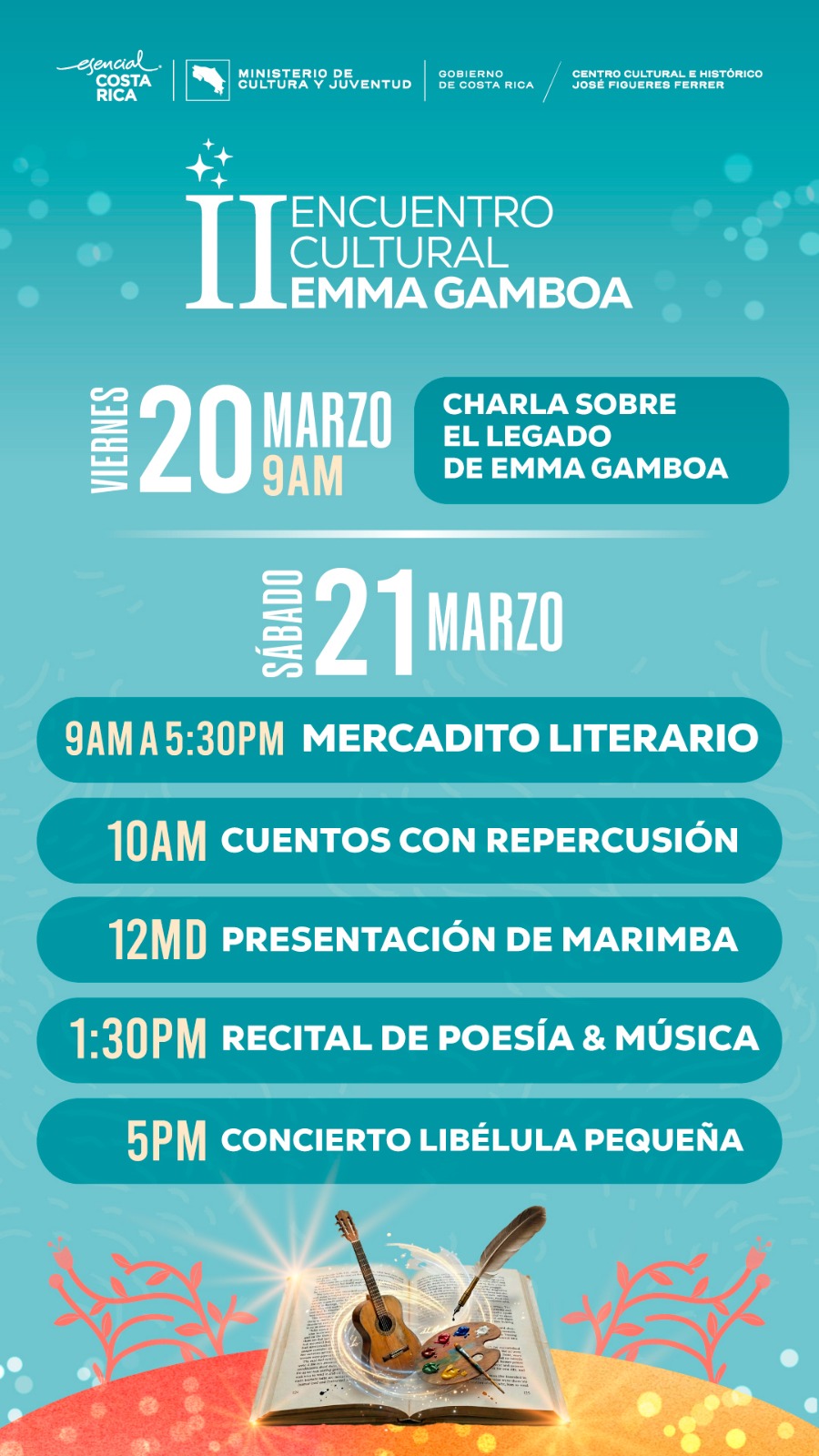 El Centro Cultural e Histórico José Figueres Ferrer realizará el II Encuentro Cultural Emma Gamboa este 20 y 21 de marzo, con una programación variada que busca convocar a distintos públicos mediante actividades artísticas y educativas de acceso gratuito.