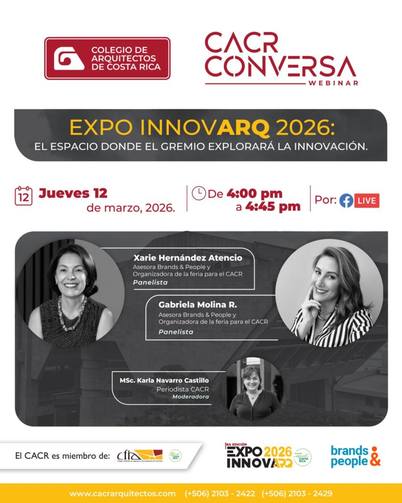 El Colegio de Arquitectos de Costa Rica (CACR) realizará el 20 y 21 de marzo la primera edición de Expo InnovARQ 2026, un evento que reunirá a profesionales, empresas, universidades, gobiernos locales y emprendedores vinculados a los sectores de arquitectura, diseño y construcción.