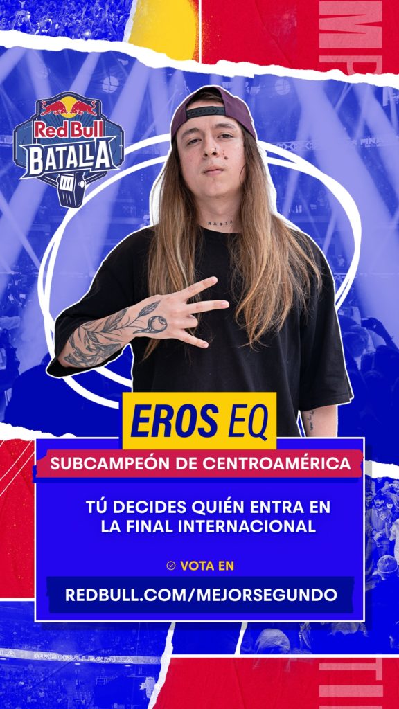 Tras su desempeño en la edición centroamericana de 2026, Eros EQ compite ahora en la votación global del “Mejor Segundo”, proceso mediante el cual el público elige a algunos de los MC que completarán los últimos cupos para la Final Internacional de Red Bull Batalla.