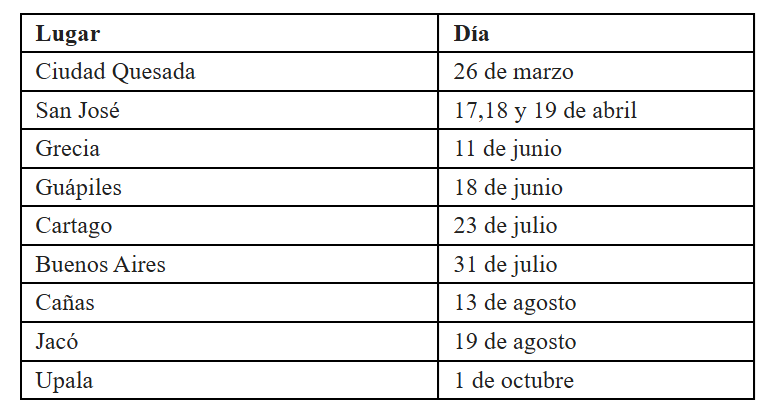Las actividades se desarrollarán en horario de 9:00 a.m. a 1:00 p.m. en los siguientes lugares: