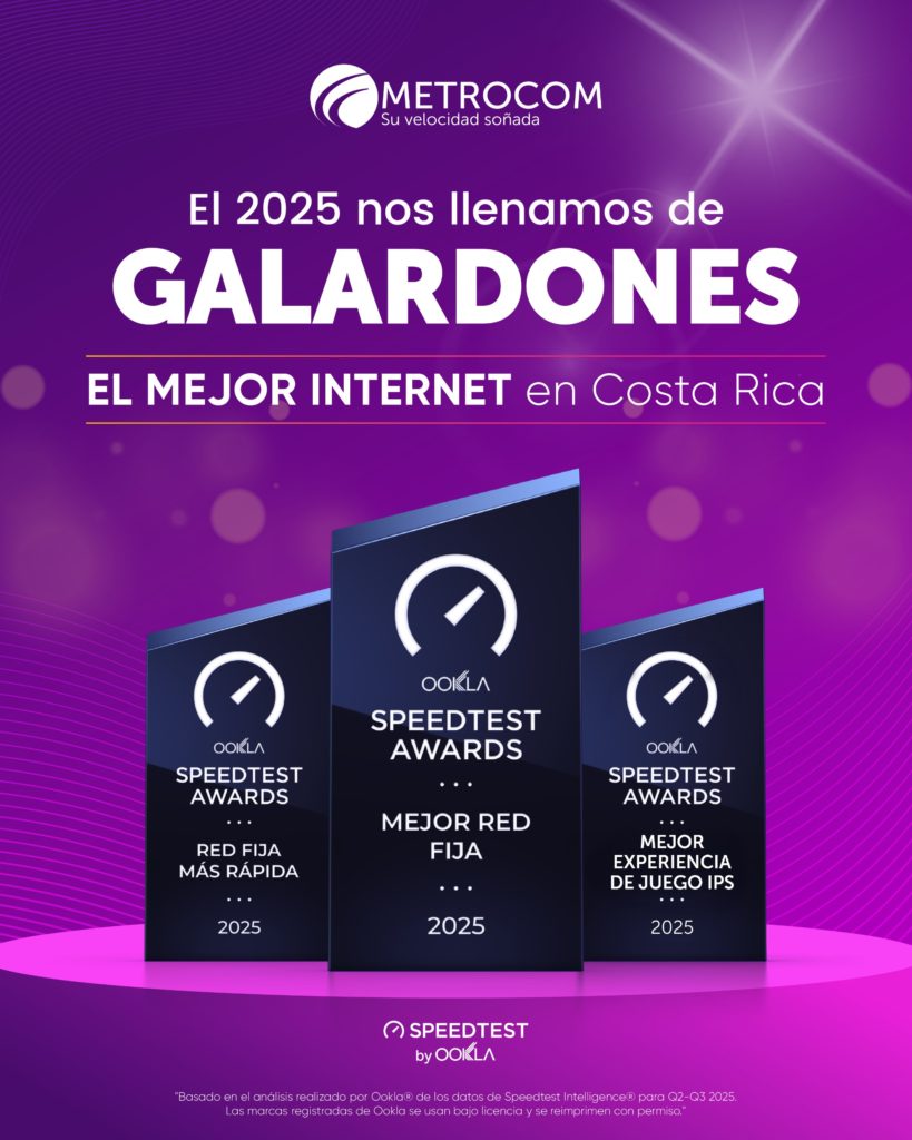 ¿Qué pasó? La firma global de inteligencia de red, Ookla, publicó este 15 de marzo un nuevo informe de calidad para los servicios de internet fijo en Costa Rica. La operadora Metrocom obtuvo los tres reconocimientos principales de la entidad: Red más rápida, Mejor experiencia en videojuegos y Mejor red fija.