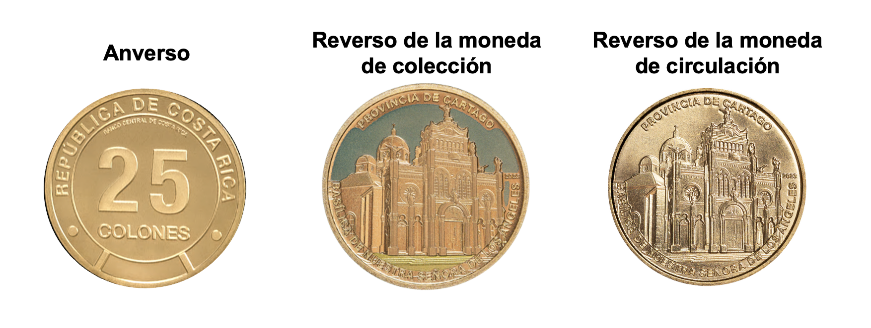 La quinta moneda coleccionable de ₡25 de la serie “Sitios Emblemáticos de Nuestras Provincias”, alusiva a la Basílica de Nuestra Señora de los Ángeles de Cartago, saldrá a la venta el próximo miércoles 25 de marzo.