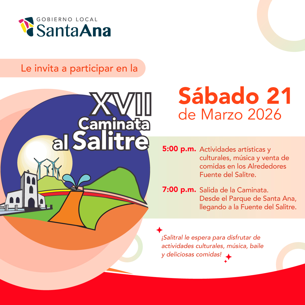 La Municipalidad de Santa Ana invita a la ciudadanía a la XVII Edición de la Caminata al Salitre 2026, una actividad que rescata y celebra una de las costumbres más representativas del cantón.