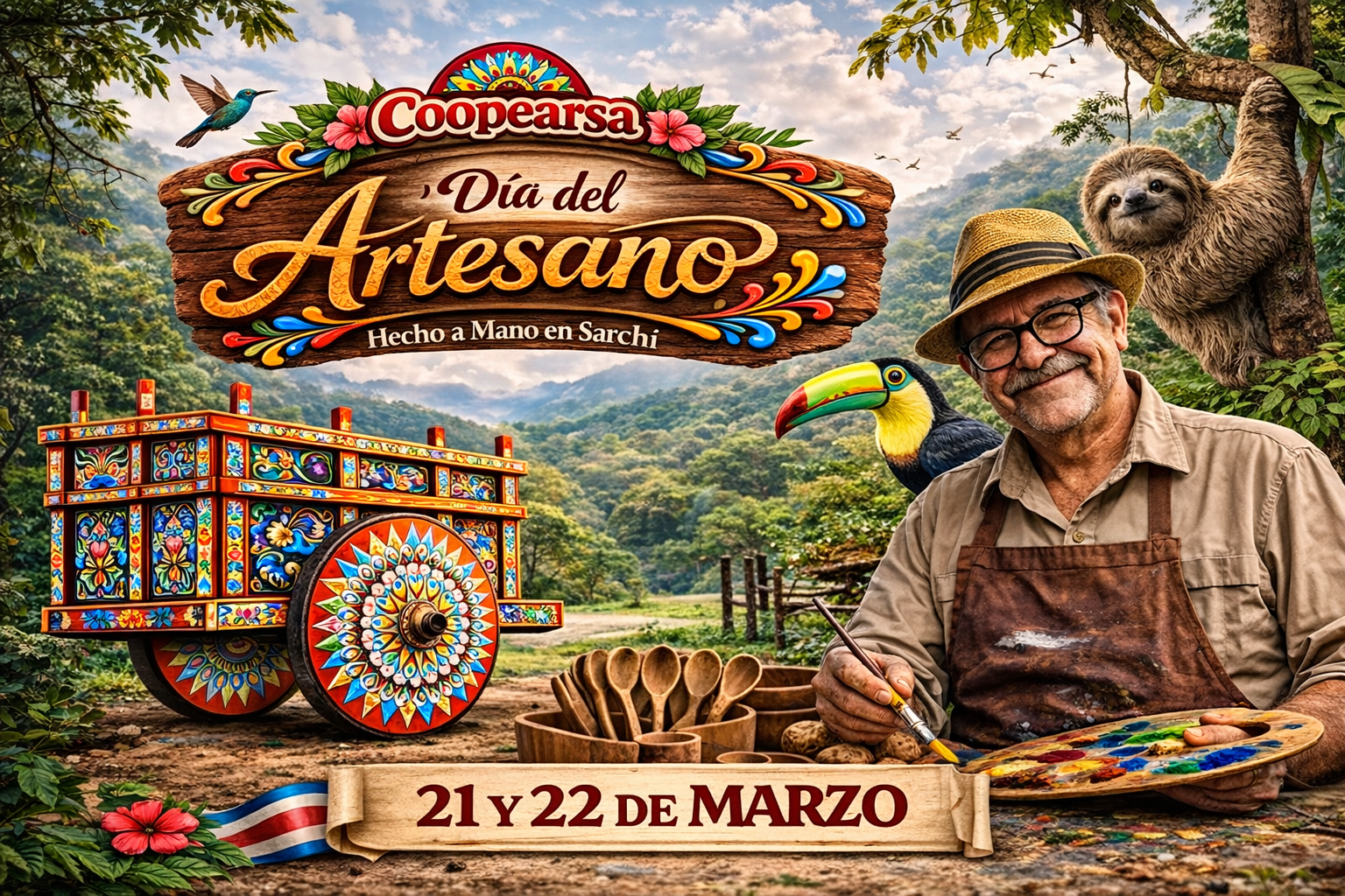 Sarchí será sede del Festival del Artesano – Hecho a Mano, una actividad organizada por la Cooperativa de Artesanos de Sarchí (Coopearsa) en el marco del Día del Artesano Costarricense, que se conmemora este 19 de marzo.