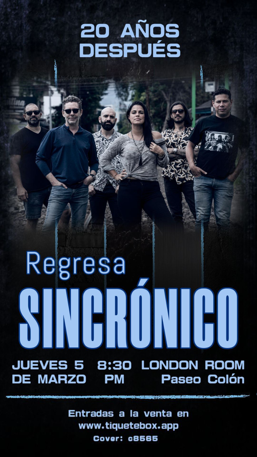 La banda indie costarricense que combina rock alternativo con elementos funk, electrónicos, espaciales y pop, Sincrónico, regresa 20 años después de su debut para realizar un único concierto en London Room, San José, el jueves 5 de marzo a las 8:30 pm.