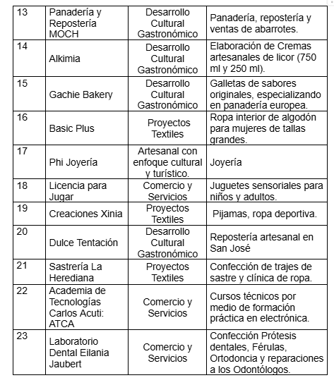 A continuación, se presentan los proyectos productivos que son parte de este proceso de fortalecimiento. De cada uno de ellos, AGECO espera crecimiento real y sostenido en los próximos meses: