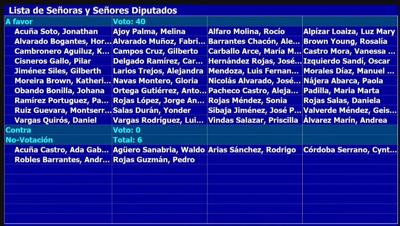 La Asamblea Legislativa aprobó en segundo debate el proyecto de ley, expediente 24171, para fomentar la infraestructura de recarga eléctrica y promover la movilidad sostenible, con un respaldo unánime de 40 diputados.