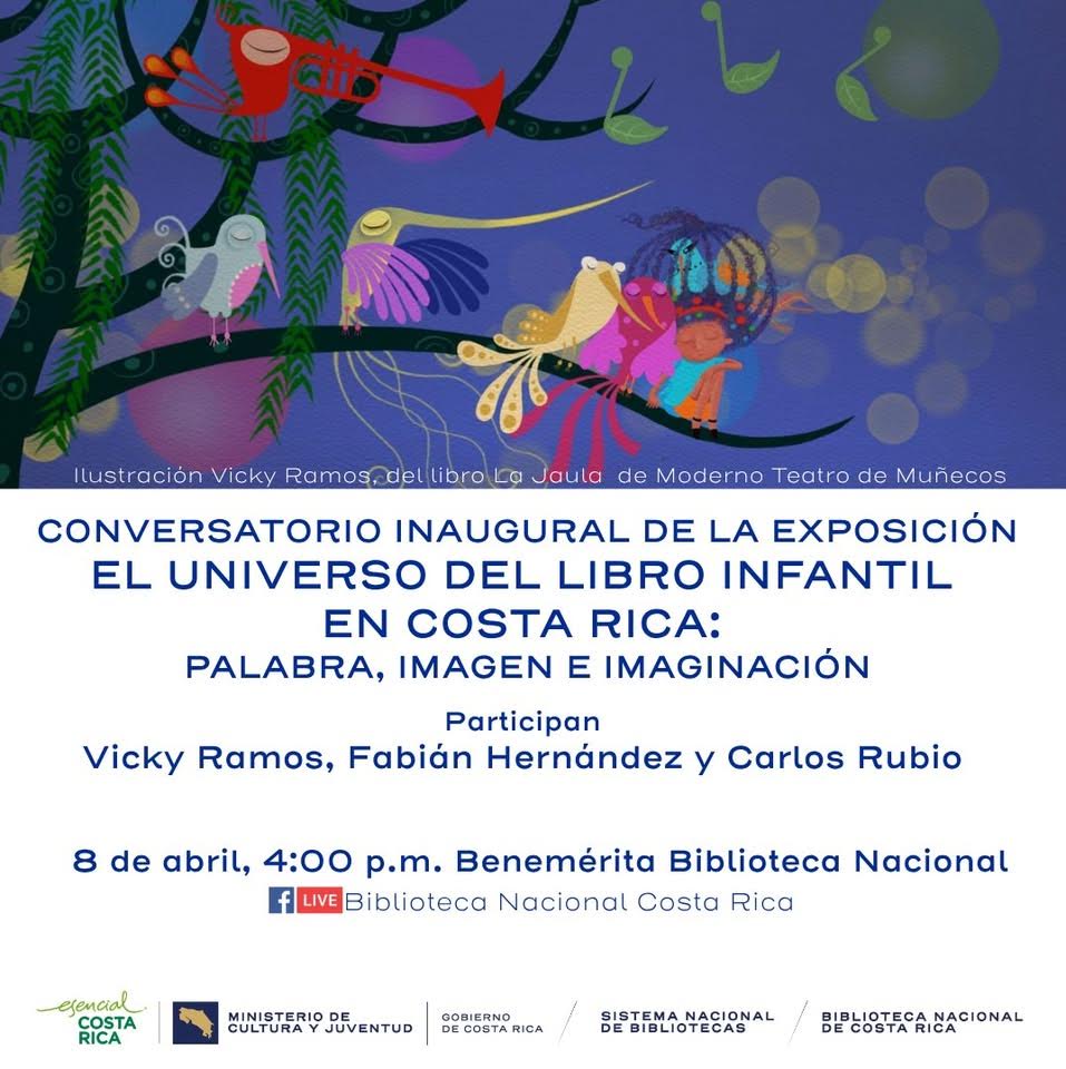 Actividad que reúne a Vicky Ramos, Fabián Hernández y Carlos Rubio en un espacio de diálogo sobre la riqueza del libro infantil costarricense desde sus dimensiones narrativa, visual y creativa. El evento marca además la inauguración de la exposición temática del mismo nombre.