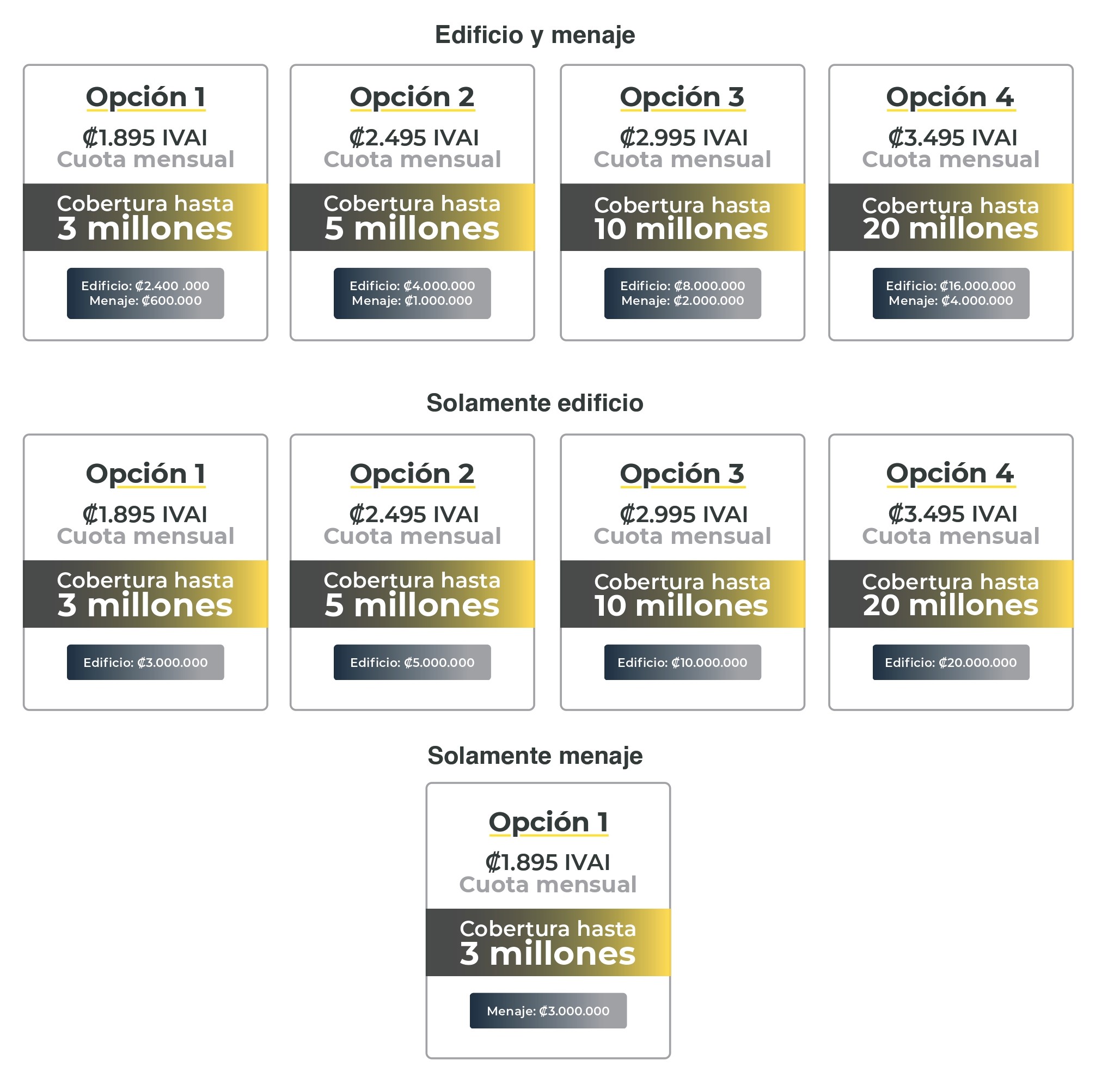 Coberturas disponibles