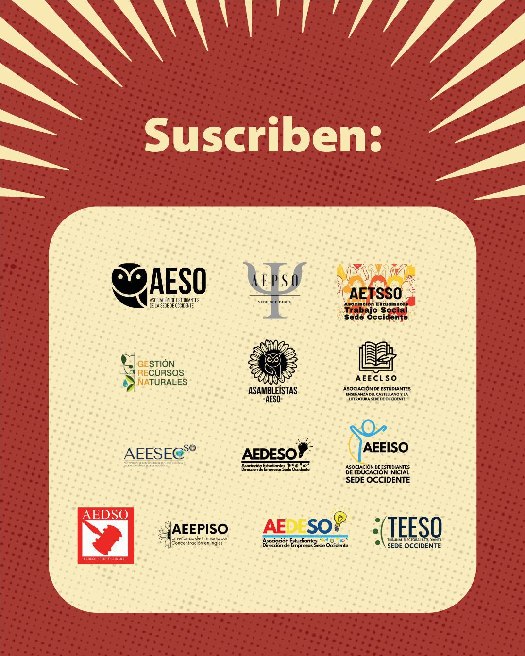 La actividad fue declarada de interés institucional por la Asociación de Estudiantes de la Sede de Occidente, lo que permitirá justificar la participación del estudiantado conforme al régimen académico de la universidad. Además, los organizadores extendieron la invitación a docentes, sectores sociales y medios de comunicación para acompañar y dar cobertura a la protesta.
