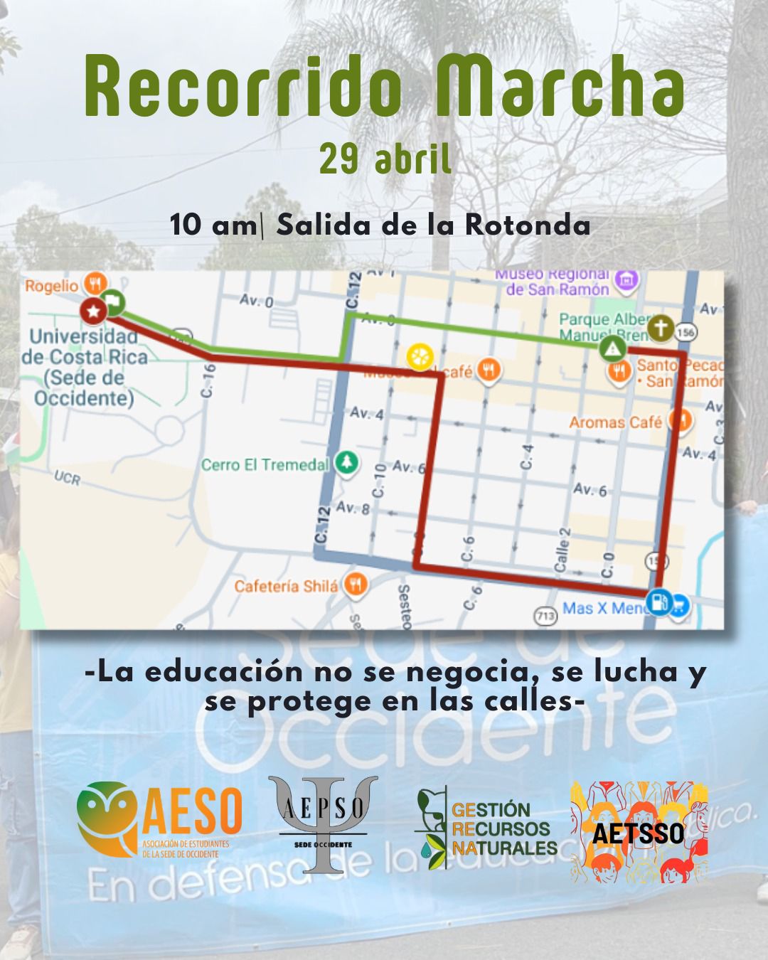La Asociación de Estudiantes de la Sede de Occidente de la Universidad de Costa Rica (UCR) convocó a una marcha el próximo miércoles 29 de abril en San Ramón, en defensa del Fondo Especial para la Educación Superior (FEES) y para exigir la renuncia del rector Carlos Araya Leandro.