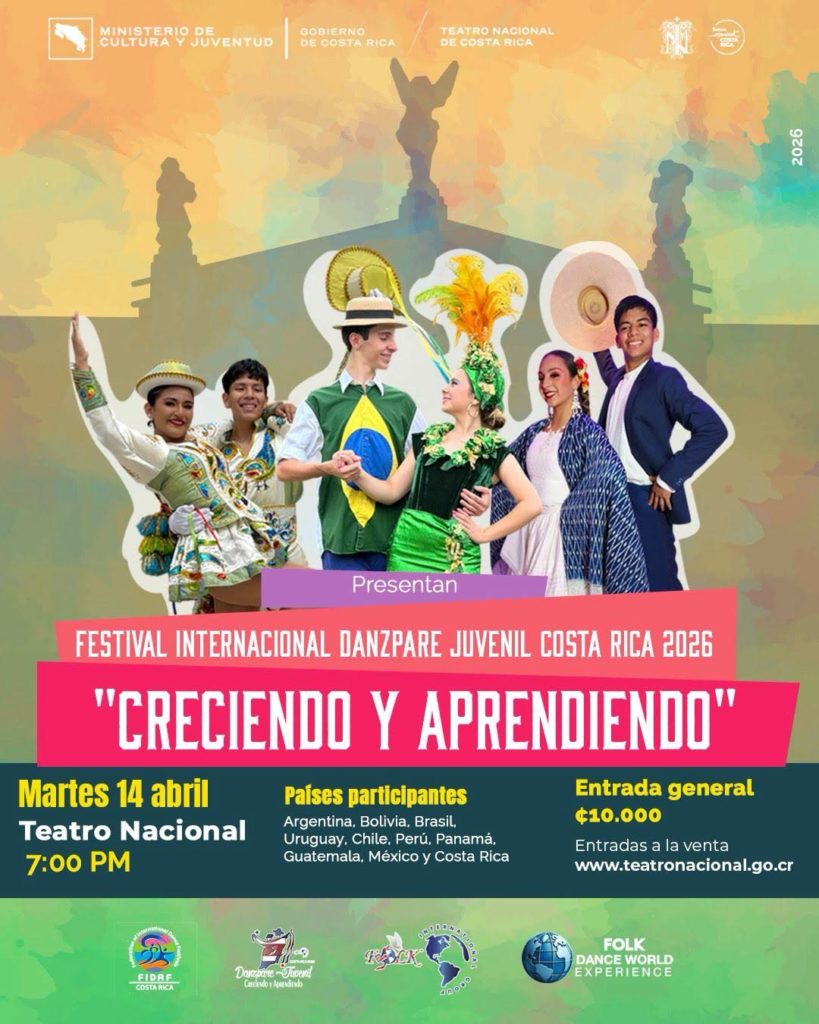 El Teatro Nacional de Costa Rica será sede de la tercera edición del Festival Internacional de Danza Patrimonial en Pareja DANZPARE Juvenil Costa Rica 2026, un encuentro que reunirá a jóvenes bailarines de distintos países de América Latina.