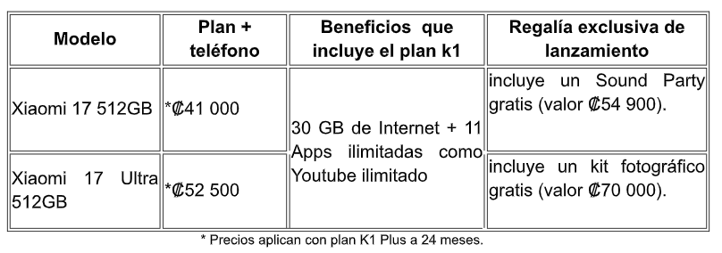Los clientes podrán adquirir estos teléfonos mediante suscripción, renovación o portabilidad a planes postpago k Plus o Dominio k, con condiciones accesibles como ₡0 prima y financiamiento a 0% de interés, además de múltiples opciones de pago con entidades financieras aliadas, según la siguiente oferta comercial.