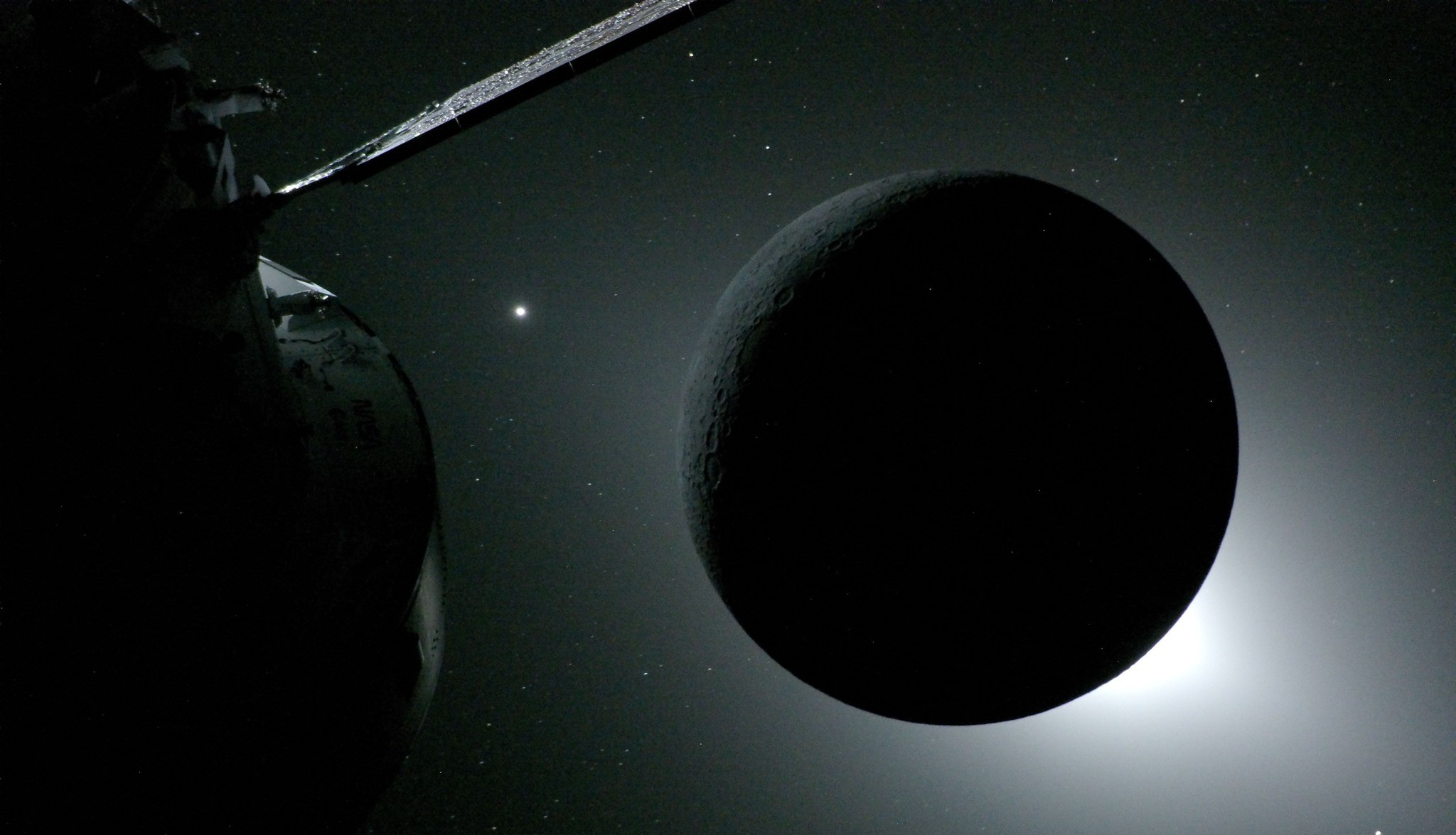 Con algo que dijo de una puerta y cómo se veía la Tierra desde la estación Orión.