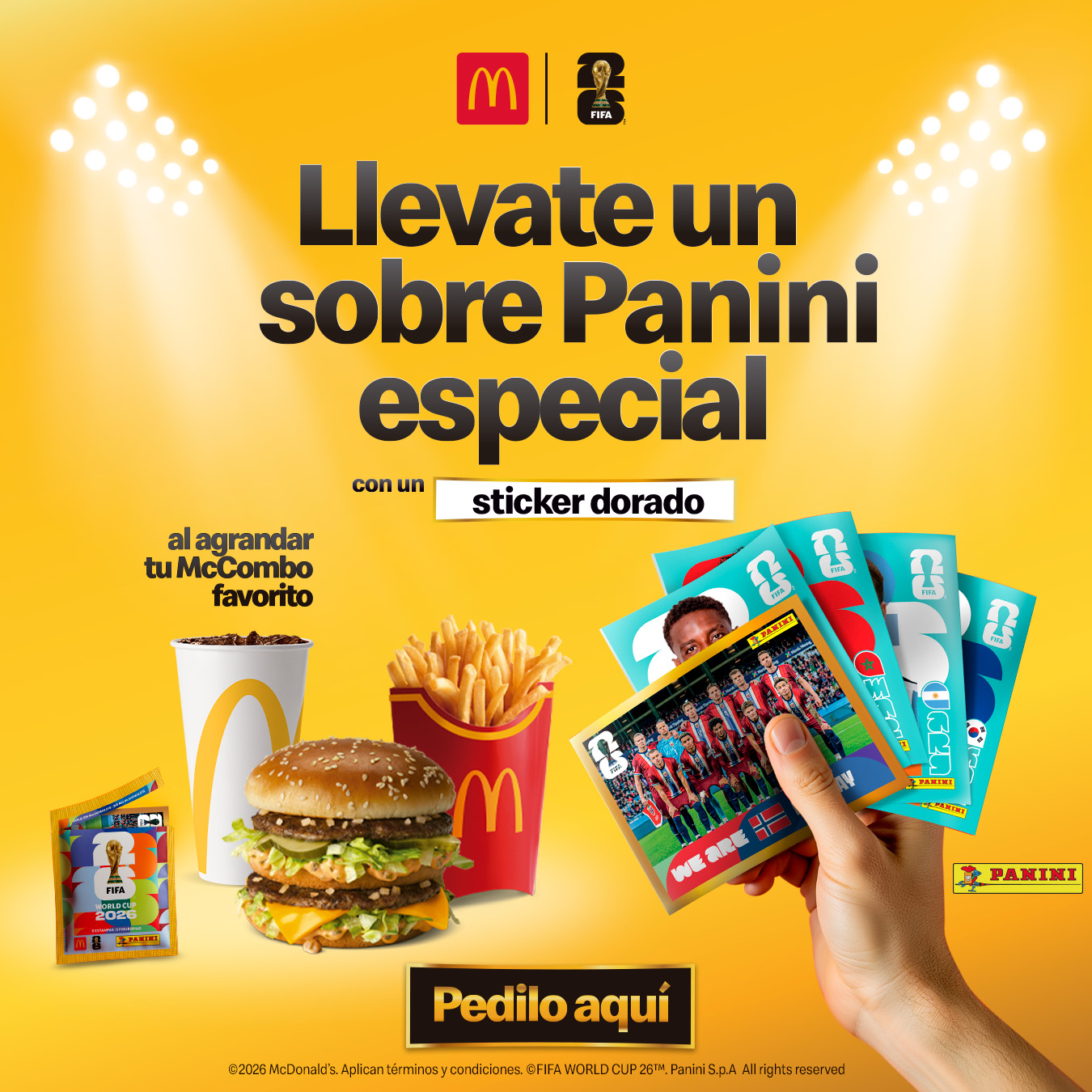 Desde este 28 de abril, agrandar el combo en McDonald's incluye un paquete de figuritas Panini —el álbum oficial de la Copa del Mundo— con contenido único.