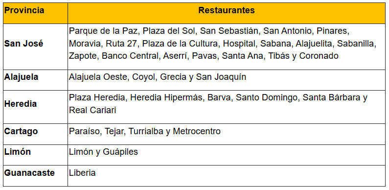 Los restaurantes en los que se estará desarrollando el “Club de Lectura Feliz” serán: