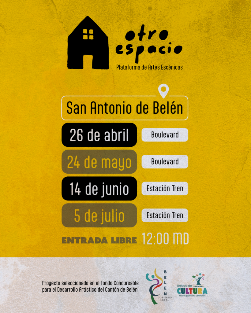 El proyecto Otro Espacio, una plataforma de artes escénicas con enfoque comunitario, desarrollará una serie de presentaciones gratuitas en espacios públicos de San Antonio de Belén durante los próximos meses.