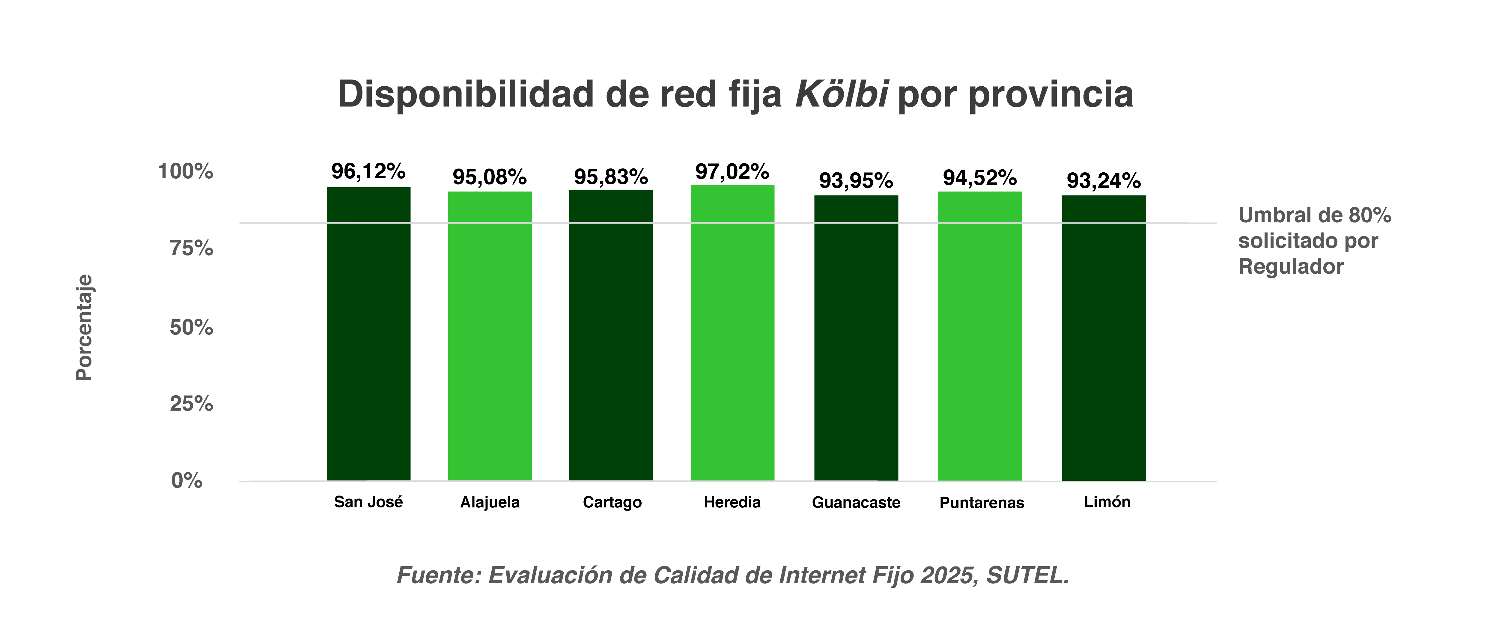 Con base en los resultados más recientes de la Evaluación de Calidad de Internet Fijo 2025, realizada por la SUTEL, Kölbi –marca comercial del Instituto Costarricense de Electricidad (ICE)– reafirma su compromiso con la entrega de un servicio confiable, estable y alineado con las condiciones ofrecidas a sus clientes.