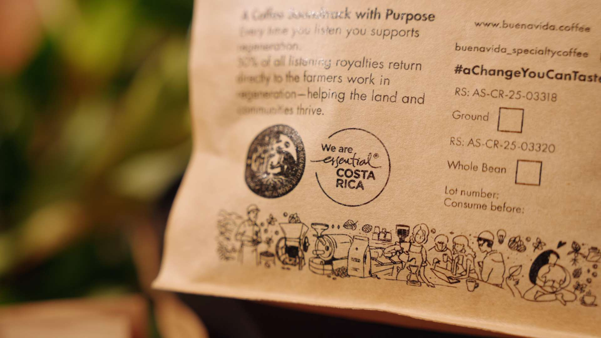 El consumidor podrá escuchar este álbum al adquirir una bolsa de Buena Vida Specialty Coffee – Sounds of Regeneration, las cuales incorporan un código QR que les permite acceder a los sonidos reales capturados en cada finca específica donde fue producido el café.