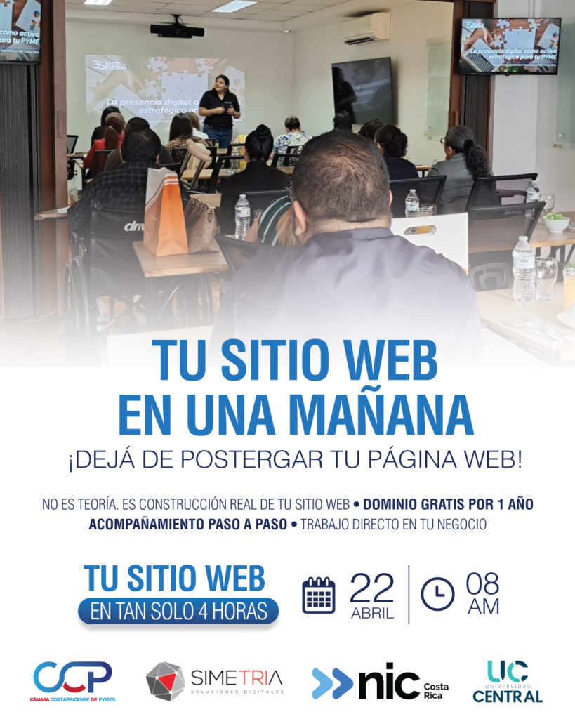 La Cámara Costarricense de PYMEs (CCPYMES), en conjunto con NIC Costa Rica y la Universidad Central, realizará un taller gratuito dirigido a empresas y emprendedores que deseen desarrollar su propio sitio web en una sesión práctica de cuatro horas.