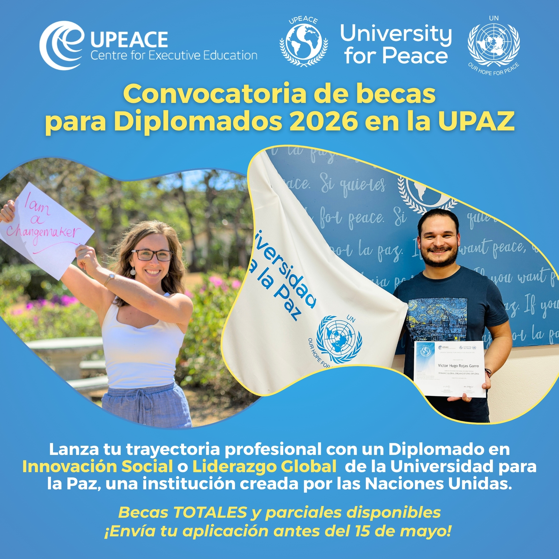 El Centro de Educación Ejecutiva de la Universidad para la Paz (UPEACE), institución establecida por la Asamblea General de las Naciones Unidas, anuncia la apertura de su Programa de Becas para Diplomados 2026 a partir de abril. El llamado es dirigido a líderes emergentes, profesionales y agentes de cambio comprometidos con la construcción de un mundo más justo, sostenible y pacífico.
