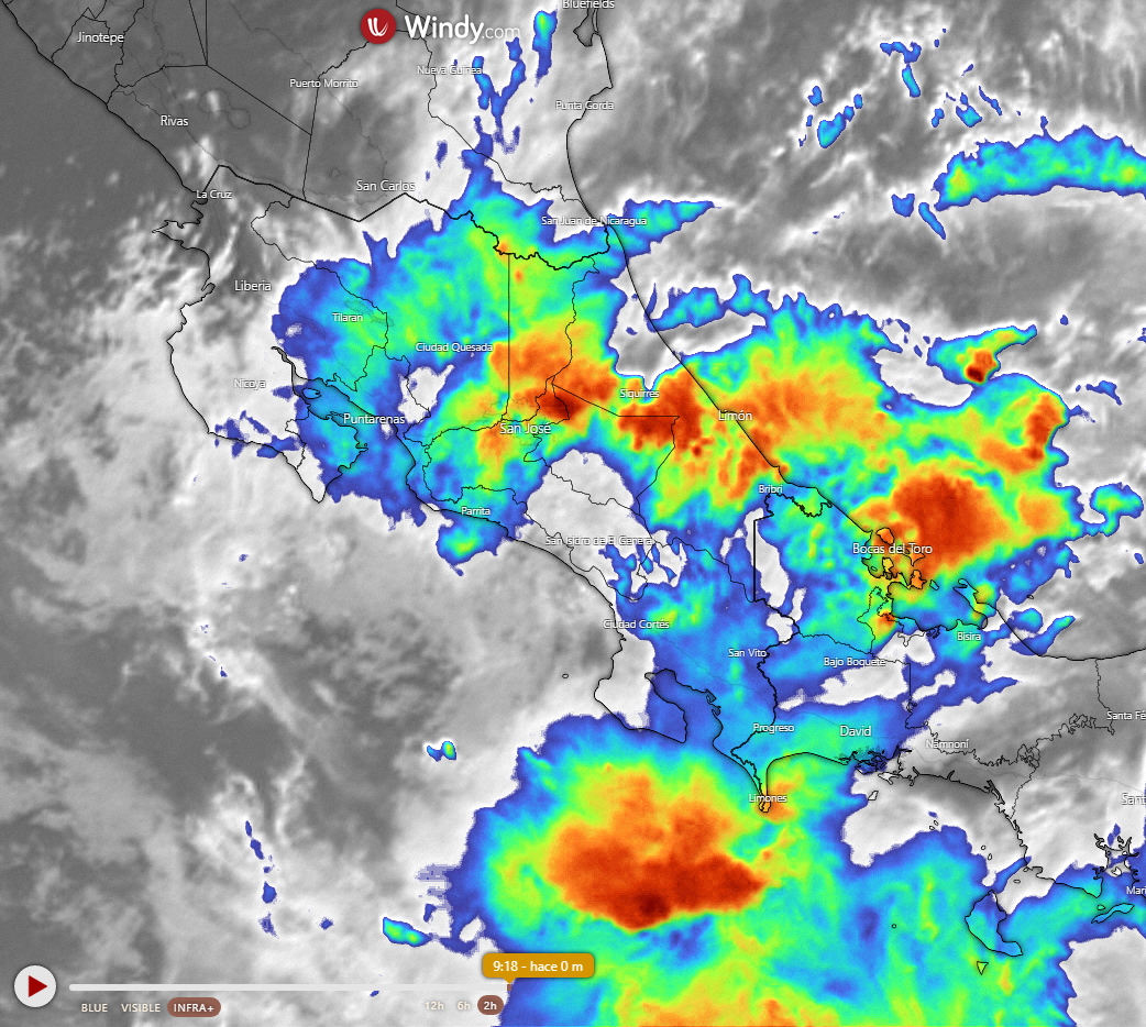 El Meteorológico pronostica que continuarán las lluvias de variable intensidad, de moderadas a intensas. Se esperan montos de lluvia entre 50-200 litros en los sectores montañosos del Caribe y Zona Norte en las próximas 24 horas, y además lluvias entre 5-45 litros en el Valle Central y montos entre 10-40 litros en el Pacífico Central y Sur en períodos de 12 horas.