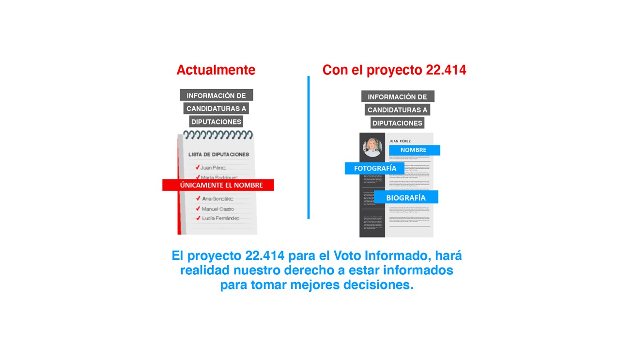 — El proyecto 22.414 (conocido como Ley de Voto Informado), que busca brindar mayor transparencia y acceso a la información en el proceso electoral, y que fue aprobado en segundo debate anteayer.... podría contener un vicio de procedimiento que imposibilitaría su promulgación como Ley de la República.