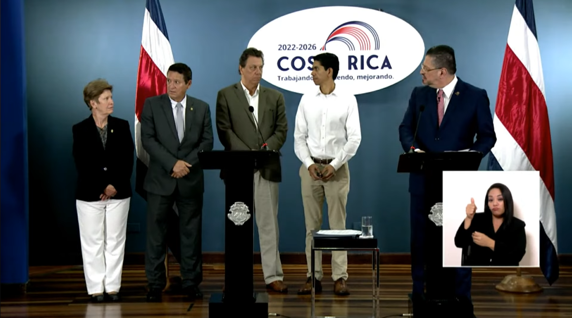 El presidente de la República, Rodrigo Chaves Robles, el ministro de Ambiente, Franz Tattenbach Capra; y el ministro de Obras Públicas y Transportes, Luis Amador Jiménez, firmaron la ley aprobada por unanimidad este mismo miércoles por el Congreso para intervenir un sector del Humedal La Culebra y dar paso a la construcción de la carretera Bernardo Soto-Sifón-Abundancia, y concluir así la carretera a San Carlos.