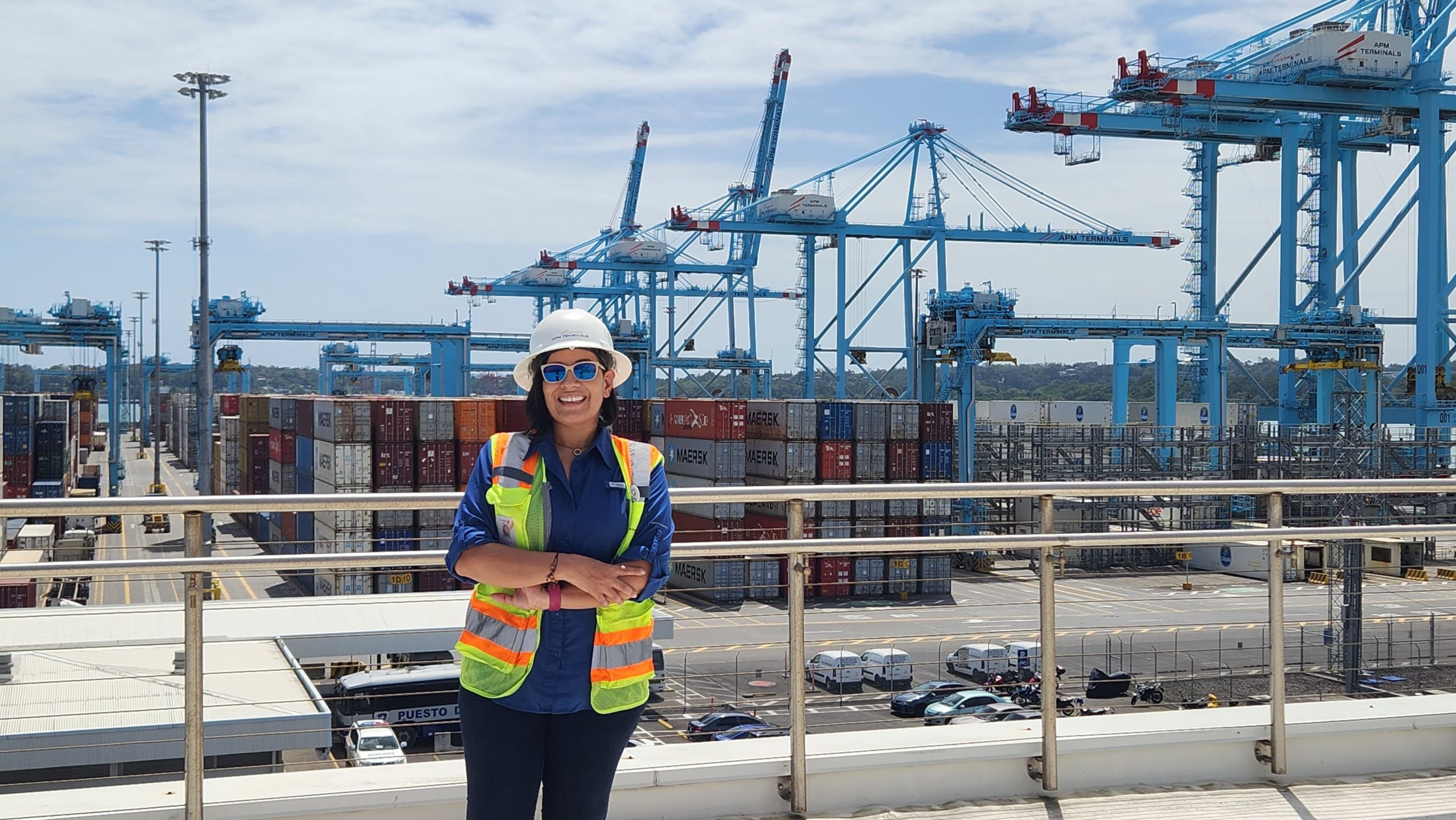 que se desempeñan como operadoras de grúas, conductoras de camión, encargadas de manejo de planeamiento del patio de contenedores y líderes de equipos.