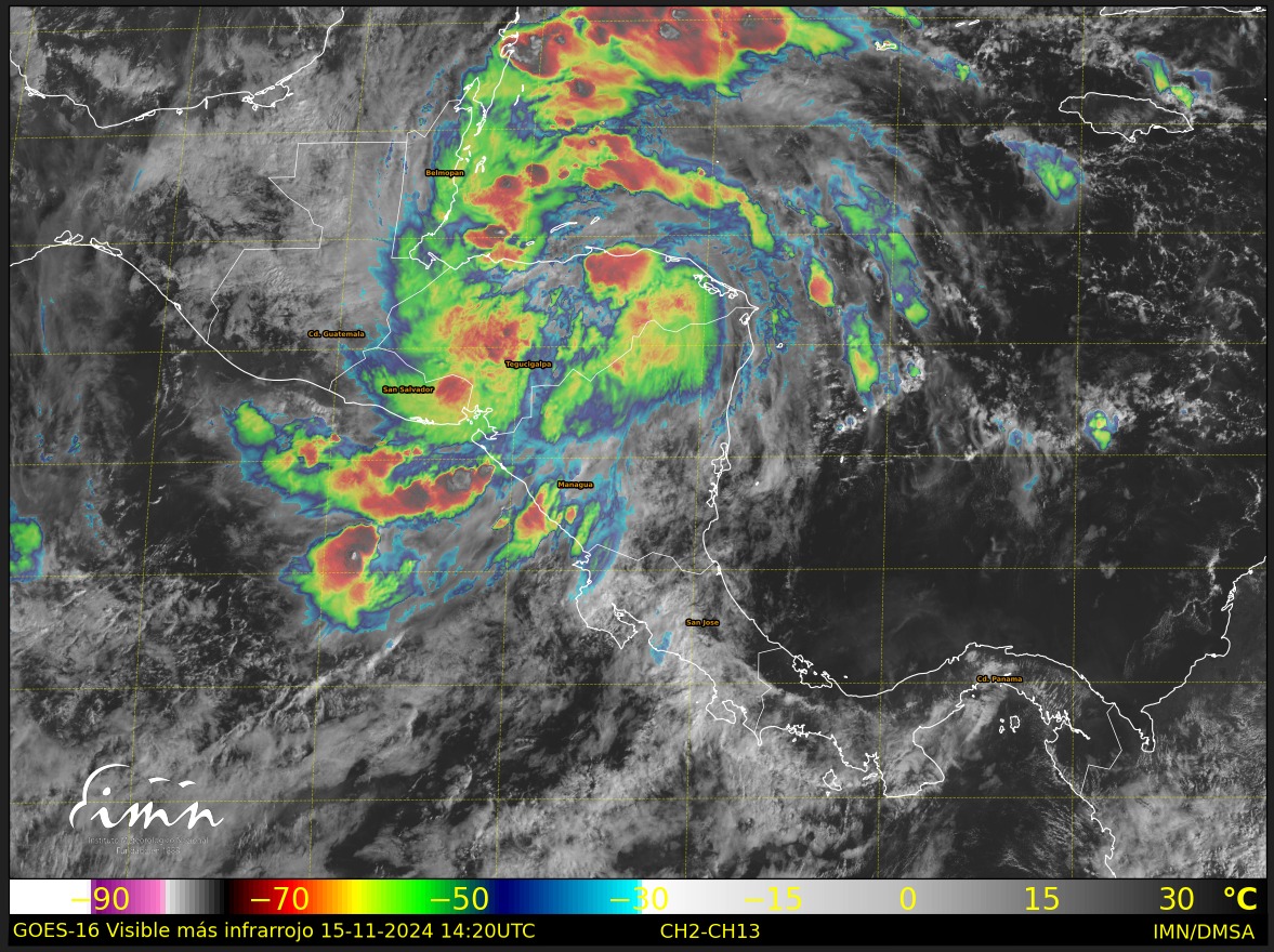 El IMN detalló que la Tormenta Tropical Sara avanza muy despacio, apenas a 4 km/h hacia el oeste por la costa de Honduras, con influencia indirecta sobre el territorio costarricense.