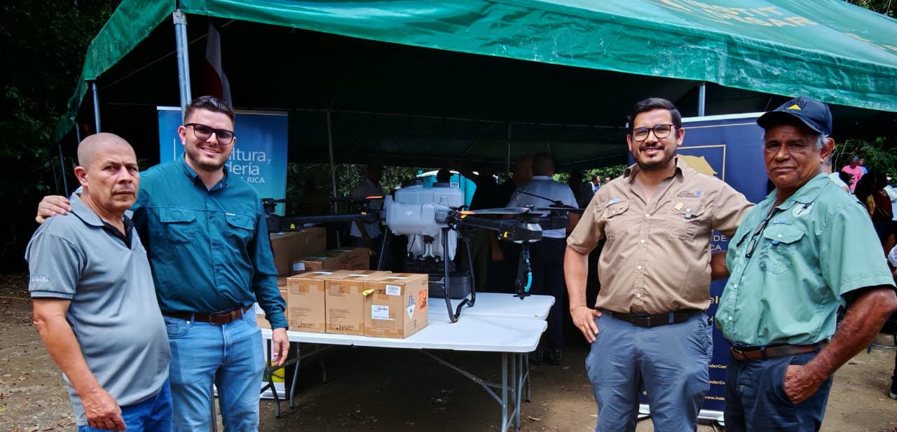 Como parte del cierre de la gira en Puerto Jiménez, el Inder entregó un dron especializado a la Cooperativa Osacoop R.L., con una inversión de ₡20,5 millones. Esta tecnología permitirá mejorar la eficiencia agrícola en cultivos de palma aceitera, cacao, vainilla y arroz, beneficiando a 111 familias productoras. Con su implementación, se facilitarán procesos de mapeo de terrenos, aplicación de agroquímicos, riego, monitoreo de plagas y acceso a datos en tiempo real.