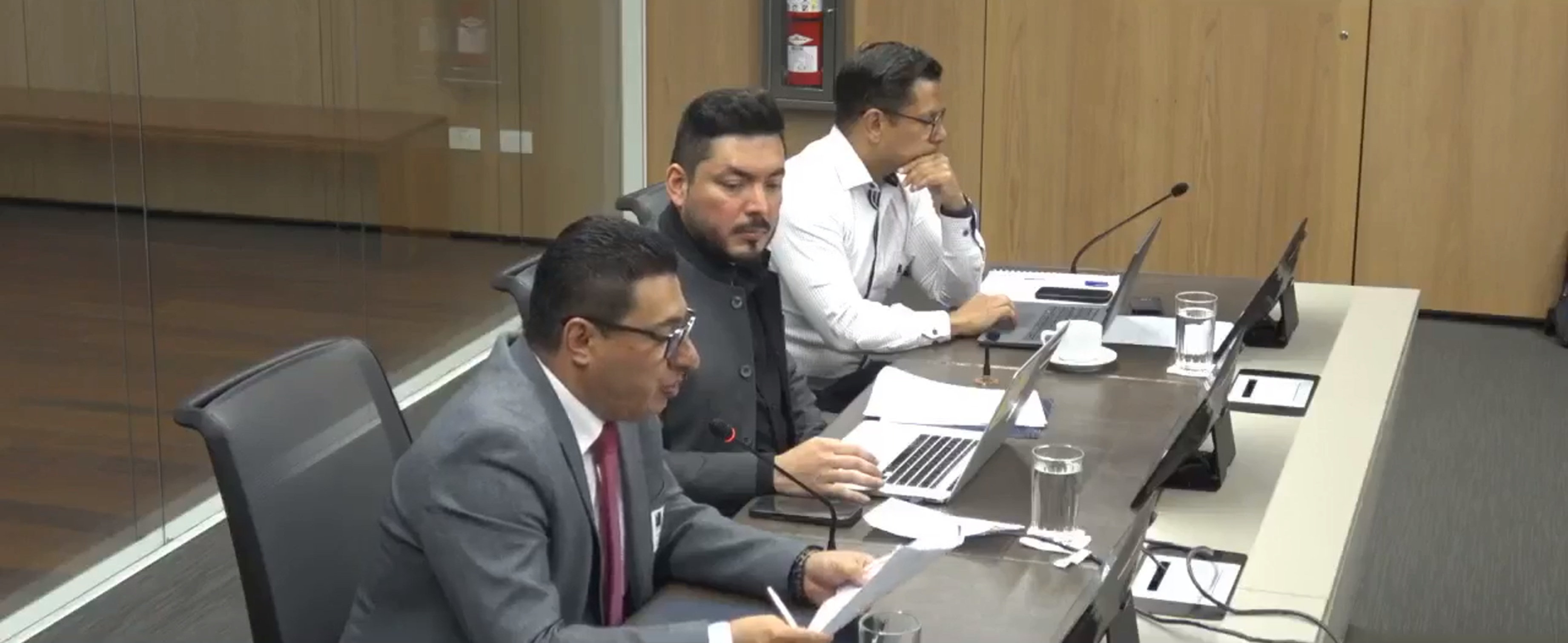 Al ingresar a la sala de la comisión para la comparecencia, el ministro de turno se colocó en la posición de quienes son llamados a responder, junto con el secretario del órgano y un abogado.