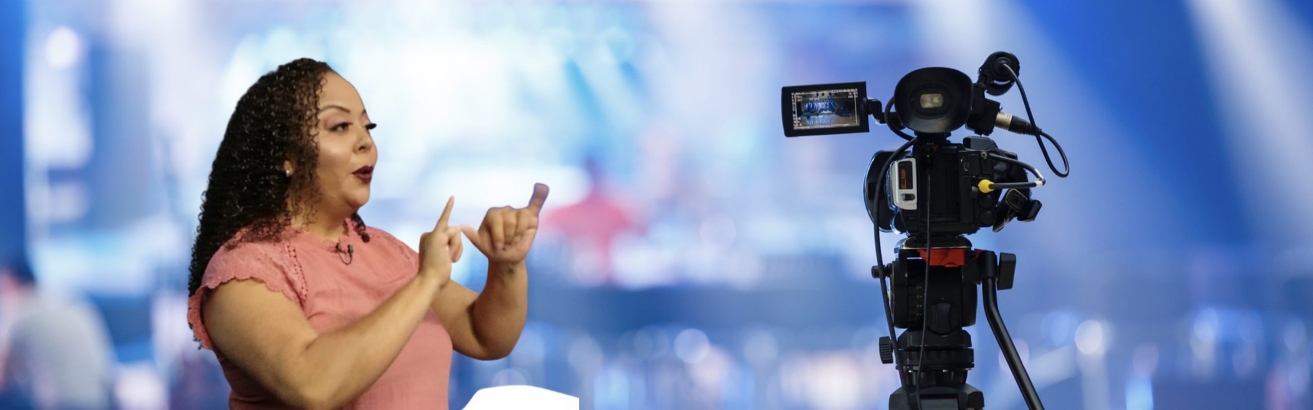 Ubicar a la persona intérprete en un espacio visible para el público sordo.