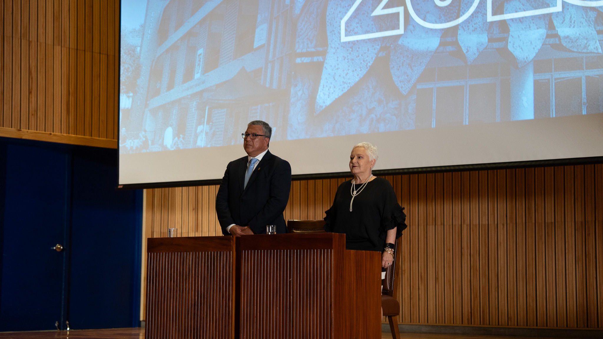 Durante su presentación el rector reiteró su protesta por la distribución del Fondo Especial para la Educación Superior (FEES) recordando que en 2025 a la UCR le correspondió el 50,19%:
