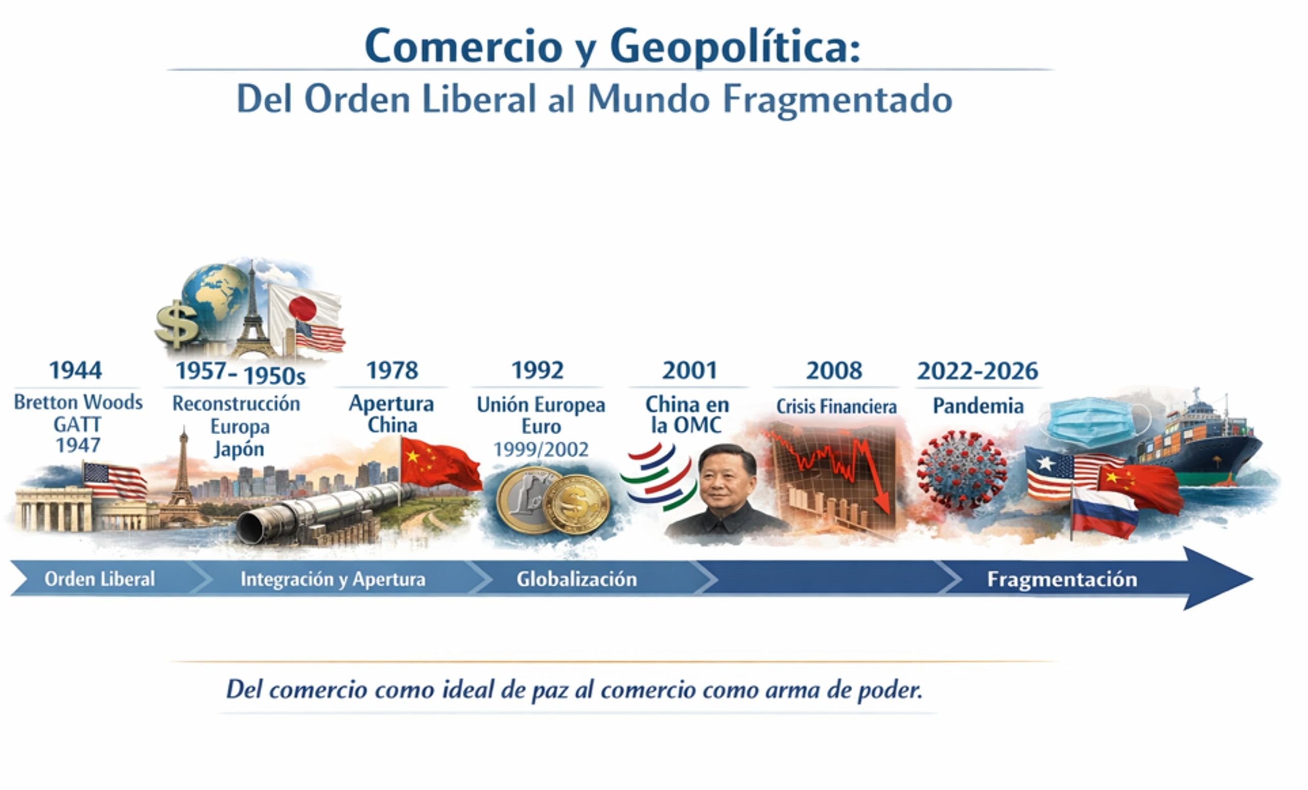 Este artículo propone un recorrido histórico —apoyado en la línea de tiempo que acompaña este texto— para entender cómo pasamos del comercio como ideal de paz al comercio como arma de poder. Un tránsito que no ocurrió de un día para otro, sino como resultado de decisiones políticas, ideológicas y estratégicas acumuladas a lo largo de décadas.
