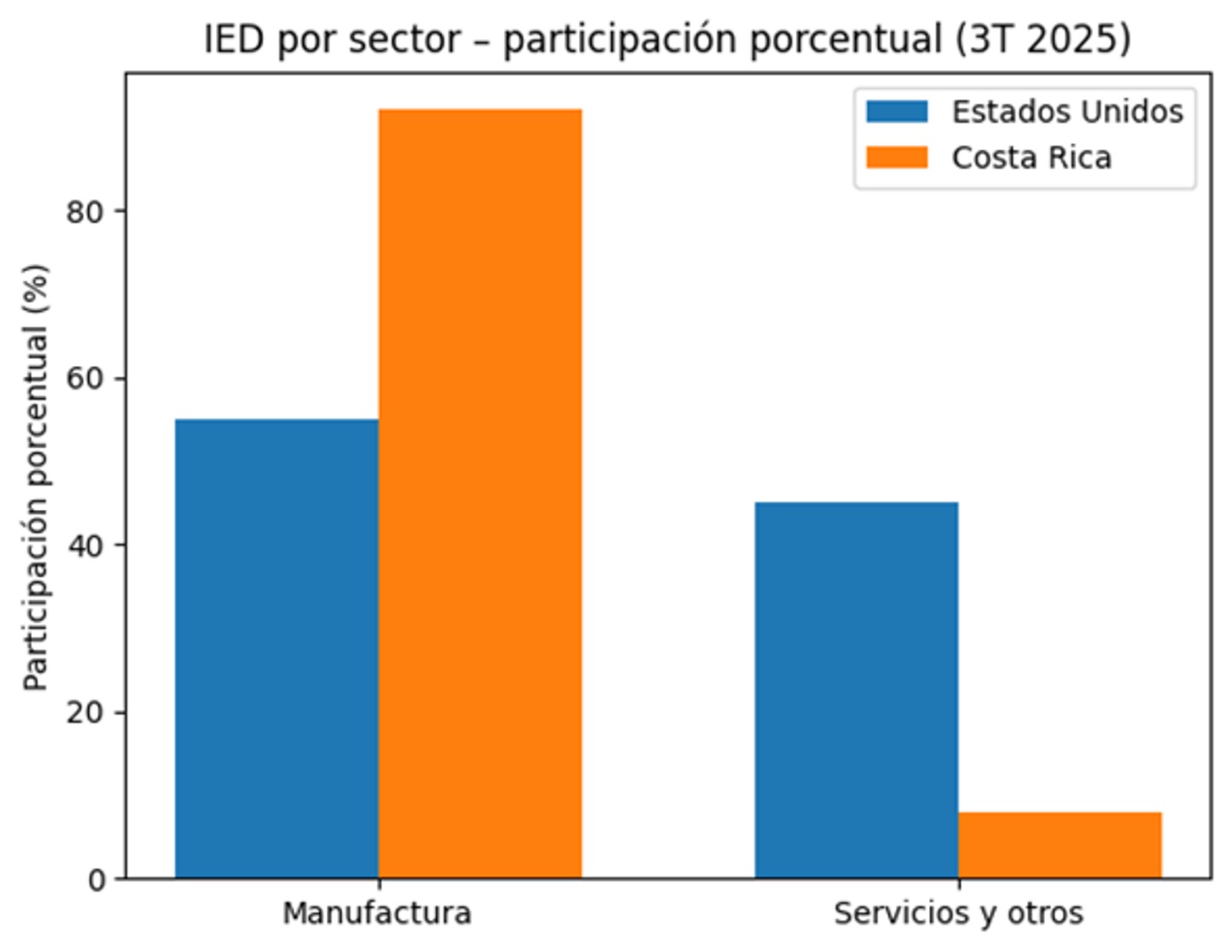 La comparación entre Estados Unidos y Costa Rica como destinos de inversión extranjera directa (IED) en el tercer trimestre de 2025 expone dos realidades económicas muy distintas: una economía global dominante que atrae capital fresco y diversificado, y una economía intermedia con nichos sólidos pero altamente concentrados y dependientes de dinámicas financieras más que productivas. Ambos países crecen en IED, pero solo uno está expandiendo capacidad productiva real.