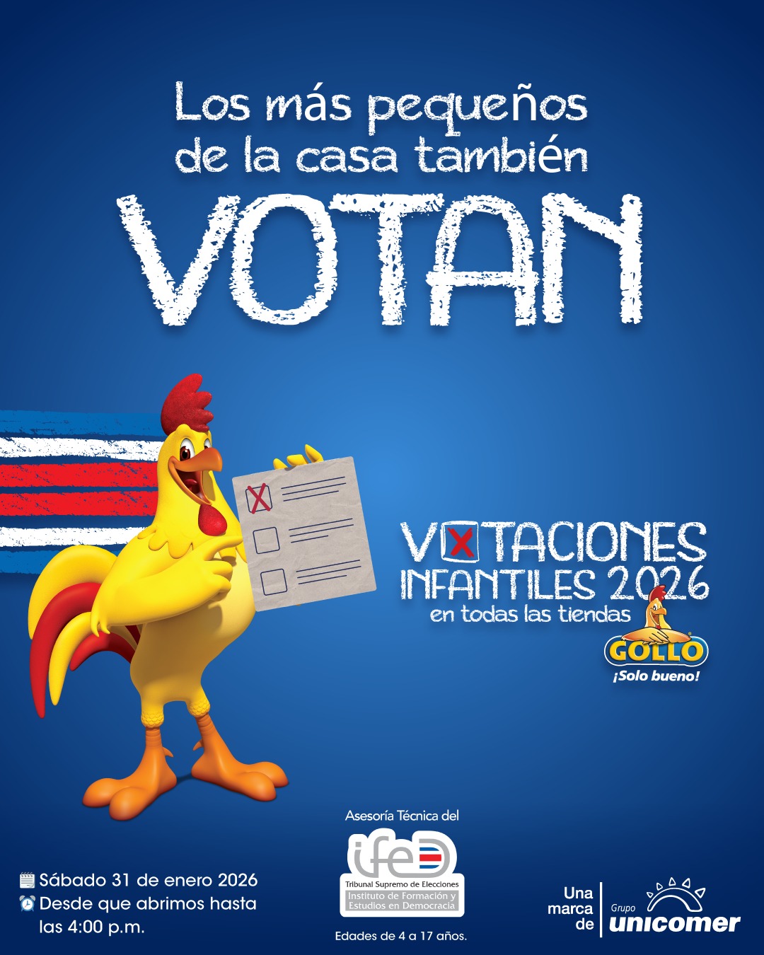 Las elecciones infantiles no requieren inscripción previa ni requisitos especiales. Las personas menores de edad únicamente deben presentarse en cualquiera de las tiendas Gollo del país para ejercer su voto. Cada establecimiento contará con un recinto electoral específico, diseñado para garantizar una experiencia inclusiva y accesible.
