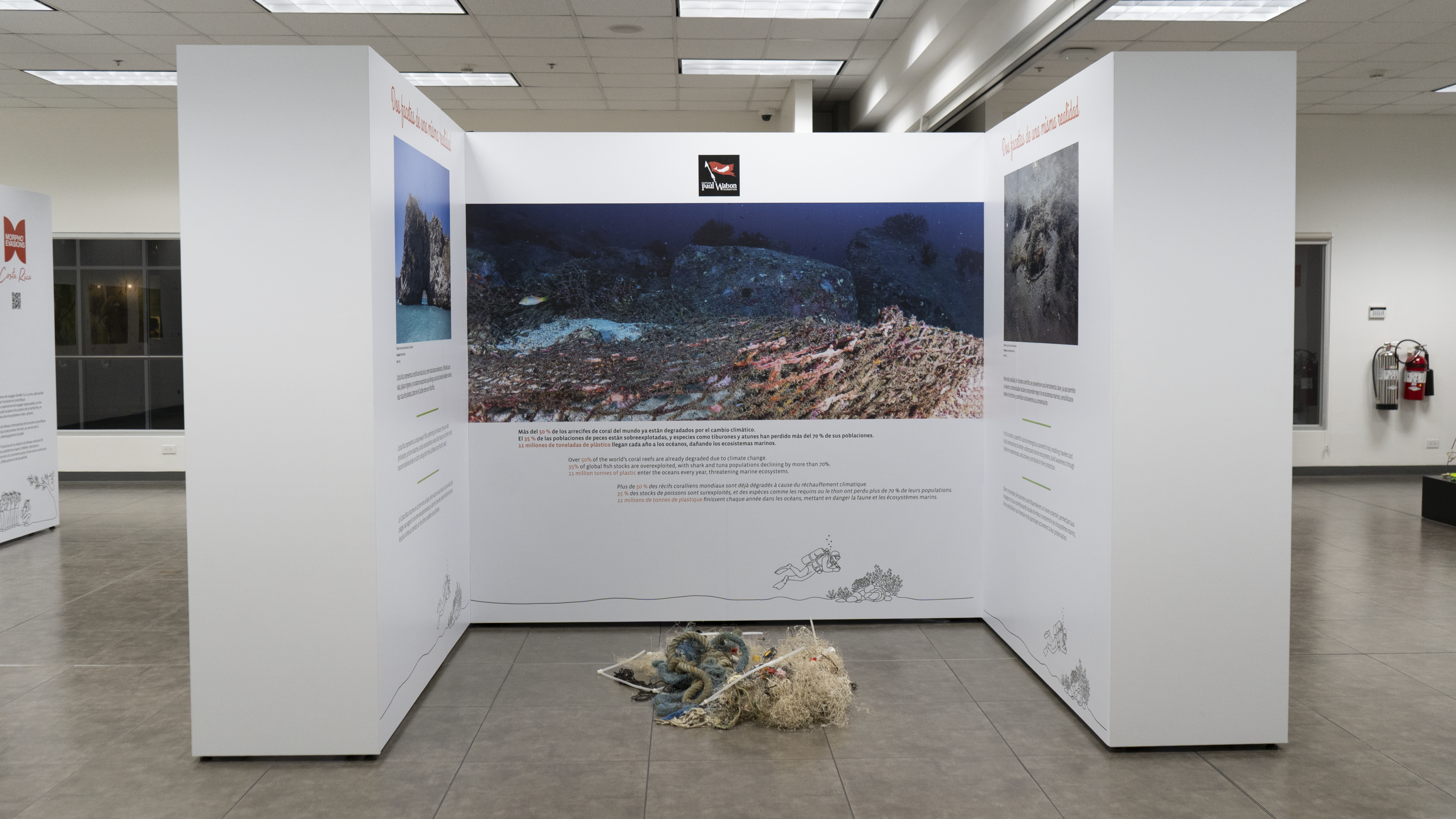 En la exposición participan iniciativas vinculadas con la conservación y la educación científica, entre ellas Alianza Mar y Tierra, Fundación Paul Watson, el Refugio de Vida Silvestre Los Cusingos, Oropopo Experiences y El Brujo Tours.