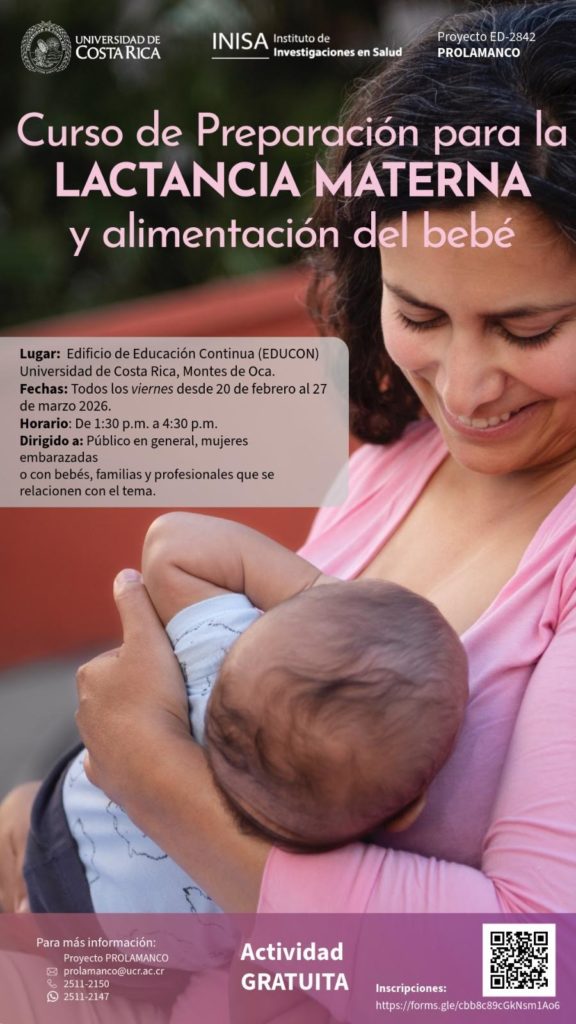 La Universidad de Costa Rica (UCR) ofrecerá el curso “Preparación para la lactancia materna y alimentación del bebé durante el primer año de vida”, un espacio formativo gratuito orientado a brindar conocimientos básicos sobre lactancia, alimentación infantil y desarrollo en los primeros meses de vida.