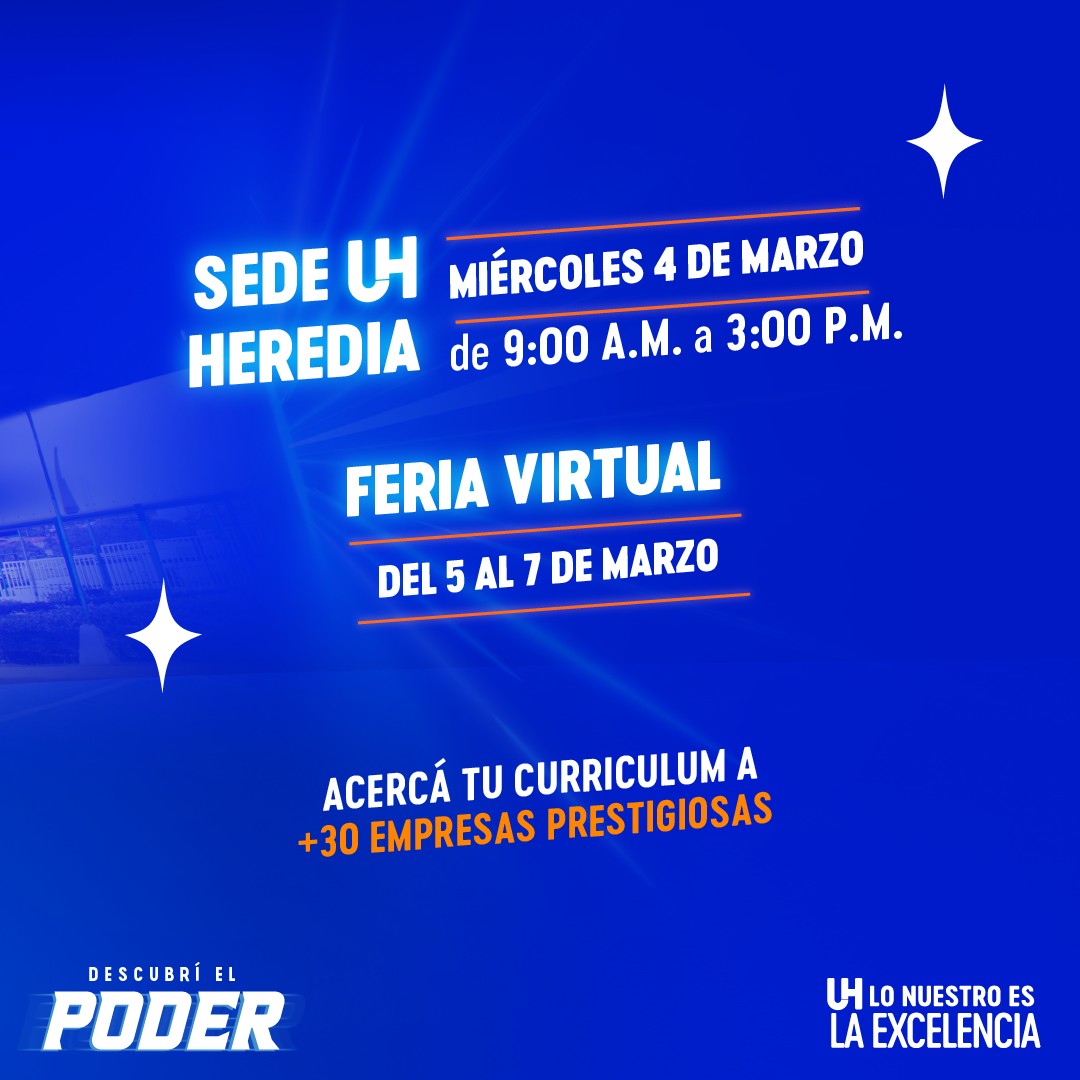 La Universidad Hispanoamericana (UH) realizará el próximo 4 de marzo su Feria Empléate UH 2026, con el objetivo de fortalecer la inserción laboral, elevar la competitividad del talento costarricense y consolidar la vinculación entre la academia y el sector productivo.
